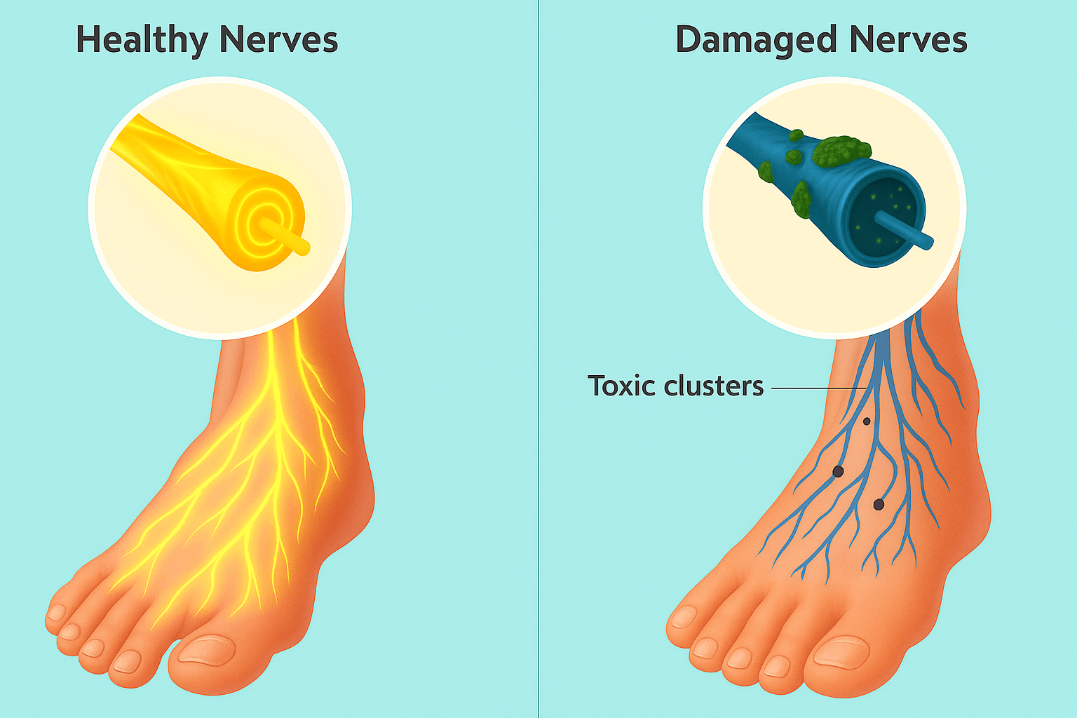 According to these scientists, neuropathy isn’t really about aging or genetics at all. Instead, the real culprit may be tiny toxic “zombie cells” that invade the nerves — clogging nerve pathways, blocking signals between the brain and body, and slowly shutting down sensitivity.